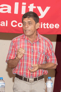 “වතු කම්කරුවන්ගේ රැකියා සහ ජීවන තත්වයන් ට එල්ල කරන ප්රහාරය ශී්ර ලංකාවේ සමස්ත කම්කරු පන්තියේ අයිතීන්ට එල්ල කරන ප්රහාරයේ කොටසක්. එය ගැඹුරුවෙන ලෝක ධනවාදී අර්බුදයේ බර කම්කරු පන්තිය මත පැටවීම පිනිස හැම රටකම ධනපති පාලක පන්තීන් කි්රයාවට දමන සමාජ ප්රතිවිප්ලවයේ කොටසක්” බව ඔහු පැවසුවේ ය.