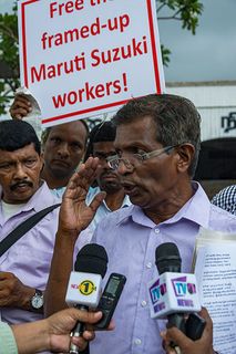 2012 ජූලි මාසයේ දී මරුති සුසුකි කලමනාකරනය කම්කරුවන්ට එරෙහිව ප‍්‍රකෝපරන උසිගන්වා ඔවුන්ට කම්හල් බිමේදී පහර දීමට කුලියට ගත් මැරයින් යොදා තිබුනේ කෙසේ දැ යි සසප කථිකයෝ පැහදිලි කලහ. මෙම කුමන්ත‍්‍රනය මධ්‍යයේ, අභිරහස් ලෙස ගින්නක් හටගත් අතර එහි ප‍්‍රතිඵලයක් ලෙස සමාගමේ මානව සම්පත් කලමනාකාර අවනිෂ් කුමාර් දේව්ගේ මරනය සිදුවුනි. “මෙම ගින්න හා කම්කරුවන්ට අනුකපම්පා සහගත වී යැයි ප‍්‍රසිද්ධව සිටි කලමනාකරුවාගේ මරනය ඩැහැ ගනිමින් ගොතන ලද මිනීමැරුම් චෝදනා මත කම්කරුවන් 13දෙනා වරදකරුවන් කොට ජීවිතාන්ත සිරදඬුවමකට ලක් කෙරී ඇතැ” යි තේවරාජා පැහදිලි කලේ ය.