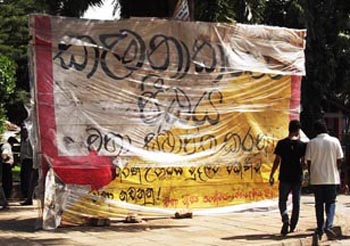 තම අයිතීන් වෙනුවෙන් අරගලයට අවතීර්නව සිටින විශ්ව විද්යාල ශිෂ්යයන්ට එරෙහිව රාජපක්ෂ ආන්ඩුව පෙර නොවූවිරූ මර්දනයක් දියත්කර ඇත. මෙම මර්දනයට එරෙහි වෙමින් සරසවි සිසුන් ආරක්ෂා කිරීමට ඉදිරිපත් වන ලෙස කම්කරු පන්තියෙන් අපි ඉල්ලා සිටිමු.