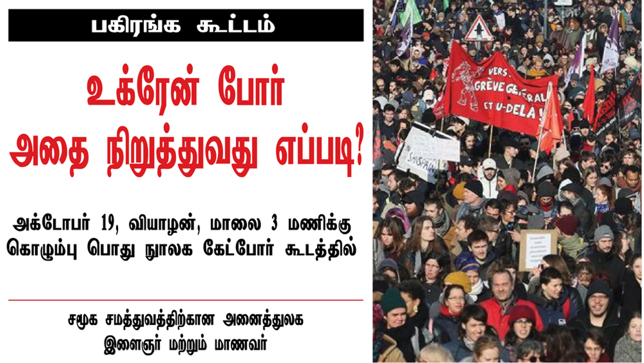 * ஐ.வை.எஸ்.எஸ்.இ.யில் சேருமாறும், இந்தப் போரை முடிவுக்குக் கொண்டுவர உக்ரேன் மற்றும் ரஷ்யாவில் உள்ளவர்கள் உட்பட சர்வதேச அளவில் தொழிலாளர்கள் மற்றும் இளைஞர்களின் போர்-எதிர்ப்பு வெகுஜன இயக்கத்தைக் கட்டியெழுப்ப போராடுமாறும் நாங்கள் உங்களை அழைக்கிறோம்.
