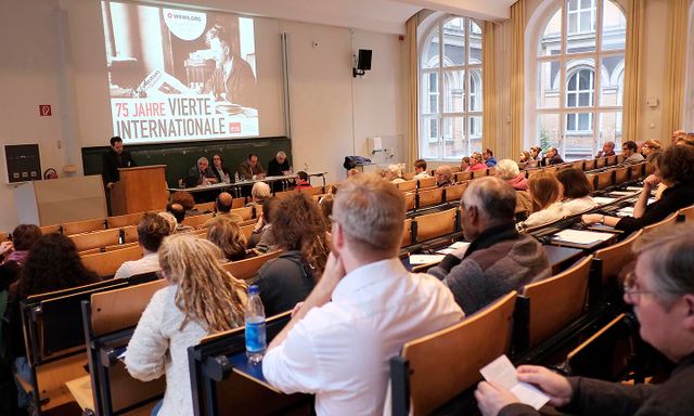 By our correspondents Use this version to print| Send feedback ஜேர்மனியின் சோசலிச சமத்துவக் கட்சியின் (PSG) முக்கிய பிரதிநிதிகளும் பிரித்தானியாவில் சோசலிச சமத்துவக் கட்சியின் முக்கிய பிரதிநிதிகளும் பேர்லினில் நான்காம் அகிலம் நிறுவப்பட்டதின் 75 வது ஆண்டுநிறைவு நிகழ்வை குறிக்கும் நவம்பர் 30 கூட்டத்தில் பேசினர். 20 ஆம் நூற்றாண்டின் வரலாற்று முக்கியத்துவம் வாய்ந்த நிகழ்வுகளில் ஒன்றினை நினைவுவுகூருவதற்கு பேர்லின் தொழில்நுட்ப பல்கலைக்கழக அரங்கில் கூடியிருந்தவர்களில் பிரான்ஸில் இருந்து வந்த பிரதிநிதிகள் குழுவும் அடங்கியிருந்தது.
