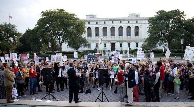 Hundreds rally to oppose sale of art at the Detroit Institute of Arts டெட்ராயிட் கலை நிறுவனக் கலைப் பொருட்களை விற்பதை எதிர்த்து நூற்றுக்கணக்கானோர் பேரணி