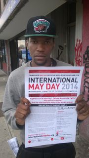 பேரணிக்கு பதிவு செய்திருக்கும் சார்ல்ஸ் என்ற ஒரு இளம் தொழிலாளி கூறினார்: “என்ன நடந்து கொண்டிருக்கிறது என்பதைக் கவனித்துக் கொண்டு வருகிறேன். எனக்கு முழு உண்மை தெரியாது என்றாலும், உண்மை ஒன்று இருக்கிறது என்பது தெரியும். அமெரிக்கா ரஷ்யாவை தாக்கவிருக்கிறது. பணக்காரர்கள் தான் இதனைச் செய்கிறார்கள். வெளிப்படையாகச் சொல்வதென்றால், நான் நினைக்கிறேன் அவர்கள் தான் 9/11 ஐ ஏற்பாடு செய்தார்கள், அதேபோன்ற ஒன்றை திரும்பவும் செய்யப் போகிறார்கள் என்று. தொழிலாள வர்க்கம் ஐக்கியப்பட்டாக வேண்டும், அதனை நாம் தொடங்கியாக வேண்டும். வெடிச் சத்தங்கள் கிளம்பும் வரை காத்திருக்க வேண்டாம், ஏற்கனவே மிகவும் தாமதமாகி விட்டது.” டெட்ராயிட்டின் கிழக்குச் சந்தையில், கலாச்சாரக் கல்விப் பட்டதாரி மாணவியான மெலிசா கூறினார்: “மே தினப் பேரணி என்பது அருமையான யோசனை என்று நினைக்கிறேன். உலகில் அமைதி வேண்டுமென்றால் பல்வேறு நாடுகளில் இருந்தும் நாம் இணைந்து வேலை செய்வது அவசியமாக இருக்கிறது.” “நான் முழுமையாக போர்-எதிர்ப்பின் பக்கம். போர் மிகவும் அநாவசியமான விடயம் என்றே நான் நினைக்கிறேன். அமெரிக்காவில் இருக்கும் பலருக்கு சோசலிசத்தைப் பற்றி அதிகம் பரிச்சயமில்லை என்பதால் அரசாங்கம் அதனை அனுகூலமாக எடுத்துக் கொண்டு அதனைக் கொண்டு, அதிலும் குறிப்பாக அதனை ரஷ்யாவுடன் தொடர்புபடுத்த முயலுவதன் மூலமாக, அவர்களைப் பயமுறுத்த முயலுகிறது. ஒபாமா, சோசலிஸ்ட் என்பதாகக் கூட அவர்கள் பேசுகிறார்கள். அவருக்கும் அதற்கும் சம்பந்தமேயில்லை. சொல்லப் போனால் அவர் பெருநிறுவனங்களுக்குத் தான் மிகவும் சாதகமாகச் செயல்படுகிறார். “இதைக் குறித்து நானும் என் நண்பர்களும் ஏற்கனவே முன்னர் பேசியிருக்கிறோம். தொழிலாள வர்க்கத்தைக் கொண்டாடுவது உண்மையிலேயே முக்கியமான விடயம் என்றே நான் நினைக்கிறேன். வாகன உற்பத்தித் துறையில் வேலை பார்க்கிற தொழிலாள வர்க்கத்தைக் கொண்டு தான் டெட்ராயிட் உருவானது.” சிக்காகோவில் பிரச்சார குழுவினருடன் பேசுகையில் ஜேம்ஸ் அமெரிக்காவில் சமூக சமத்துவமின்மையின் மிக உயர்ந்த மட்டங்கள் நிலவுவது குறித்து பேசினார்: “இந்த சமத்துவமின்மை திட்டமிட்டதாக இருக்கிறது. வழிவகையுடனான மனிதர்கள் உச்சியில் செல்வத்தைக் குவித்ததன் விளைவே இது, இதற்கு எதிரான வழிமுறை தொழிலாளர்களிடம் இல்லாதிருக்கிறது.” |