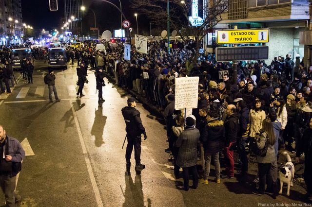 கொண்ட ஆர்ப்பாட்டம் நடைபெற்றது. ஜனவரி 10 அன்று மற்றொரு எதிர்ப்பு நடைபெற்றது. அடுத்த நாள், இயந்திர இயக்குனர்கள் வருவதைத் தடுக்க முயற்சிகள் மேற்கொள்ளப்பட்டன; அத்துடன் “கமொனாலுக்கு அகல வீதி தேவை இல்லை” என்ற கோஷங்கள் இருந்தன. கூட்டம் வன்முறையில் பொலிசாரால் கலைக்கப்பட்டது; அவர்கள் 17 ஆர்ப்பாட்டக்காரர்களை கைது செய்தனர், ஒரு சிறுவன் உட்பட, இரண்டு பேர் காயமுற்றனர். மேலும் எதிர்ப்புக்கள், தடுப்புக்கள் மற்றும் பொலிஸ் வன்முறை தொடர்ந்த நாட்களில் ஏற்பட்டன. ஞாயிறு மாலை கிட்டத்தட்ட 1,000 பேர் உள்ளூர் செய்தித்தாள் Diario de Burgos அலுவலகத்திற்கு முன் “அவர்கள் விற்றுவிட்டனர்; உண்மையில் இங்கு என்ன நடக்கிறது என்பது குறித்து அவர்கள் தகவல் கொடுக்கவில்லை” என்று கூச்சலிட்டனர். மேயர், 200 கலக எதிர்ப்புப் பிரிவு பொலிசை அழைத்தார்; அவர்கள் பலமுறையும் ஆர்ப்பாட்டக்காரர்களை தாக்கினர். “பயங்கரவாதத்தை எதிர்த்தல், விடையிறுத்தல் என்பதை முக்கிய செயலாகக் கொண்ட” சிறப்பு செயற்பாடுகள் குழுகூட (Grupo Especial de Operaciones, GEO), எதிர்ப்பை அண்டை நகரான வல்லடோலிட்டி இல் இருந்து நசுக்க அனுப்பப்பட்டது. மாட்ரிட்டின் மேயர் அனா போடெல்லா atentados என விளக்கி கண்டித்தார்; ஸ்பெயின் மொழியில் இது பயங்கரவாதத் தாக்குதலைக் குறிக்கும். இதுவரை 46க்கும் மேலானவர்கள் கைது செய்யப்பட்டனர்; “பொது ஒழுங்கை சீர்குலைப்பு மற்றும சேதங்களுக்கு” காரணம் எனக் குற்றம் சாட்டப்பட்டனர். பெரும்பாலானவர்கள் 18ல் இருந்து 24 வயது வரை உள்ளனர். ஐந்து பேர் மீது குற்றம் சாட்டப்பட்டு பிணைஎடுப்புத் தொகை 3000 யூரோக்களில் விடுவிக்கப்பட்டனர்; இன்னும் 7 பேர் சிறைத்தண்டனை அச்சுறுத்தலை எதிர்நோக்குகின்றனர்.
