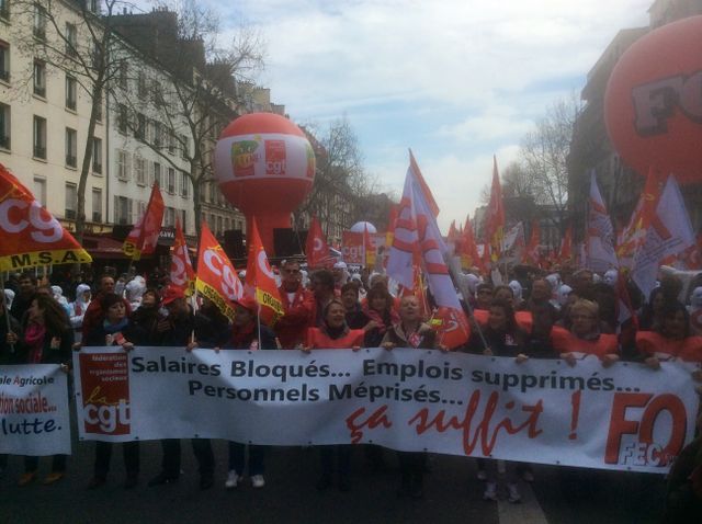 ஒரு அரசியல் முட்டுச்சந்தாகும். CGT எனப்படும் ஸ்ராலினிச தொழிலாளர் பொதுக் கூட்டமைப்பு கடந்த மாதம் எதிர்ப்பிற்கு அழைப்பு விடுத்திருந்தது; அதே நேரத்தில் தாங்கள் ஹாலண்டின் “பொறுப்புணர்வு ஒப்பந்தத்திற்கு” (Pacte de responsabilité) எதிராக இல்லை என்றும் வலியுறுத்தியது; அதுவோ பல்லாயிரக்கணக்கான பில்லியன் யூரோக்களை சமூகநல நிதியில் இருந்தும் அதேபோல பெருநிறுவன வரிகளில் இருந்தும் வெட்டுகிறது. இத்தகைய எதிர்ப்புக்கள், ஹாலண்டின் வெட்டுக்களுக்கு தொழிற்சங்கங்கள் பேரம் பேசியதை மறைக்கும் எரிச்சலூட்டும் வடிவமைப்பு கொண்டவை, மற்றும் தொழிலாளர்களுக்கு எதுவும் வழங்கப்போவதில்லை. இவை சுயதிருப்தி மற்றும் பேரினவாத அதிகாரத்துவத்தினருக்கும் சமூகநல வெட்டுக்கள் குறித்து ஆழ்ந்த கவலையும் சீற்றமும் கொண்ட தொழிலாளர்களுக்கும் இடையே உள்ள பெரும் சமூக பிளவையும், நவ-பாசிச தேசிய முன்னணியின் (FN) உயரும் செல்வாக்கையும், உக்ரேனில் உள்ள ஆக்கிரோஷ, தீவிர வலது ஆட்சிக்கு PS கொடுக்கும் ஆதரவையும் உயர்த்திக் காட்டுகின்றன.