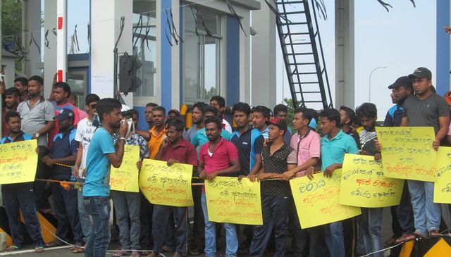 மாகம்புர துறைமுக வேலைநிறுத்தத்தில் ஈடுபட்டுள்ள தொழிலாளர்கள்