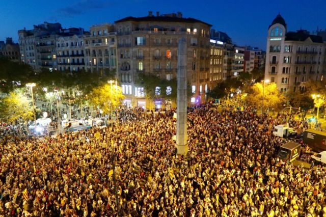 இந்த வாரத்தில் கட்டலோனியாவில் மிகப்பெரும் பிரிவினைவாத அமைப்புகளின் தலைவர்கள் -கட்டலான் தேசிய சட்டமன்றத்தின் (ANC) ஜோர்டி சான்சேஸ் மற்றும் Òmnium Cultural அமைப்பின் ஜோர்டி குவிக்ஸார்ட்- சிறையிலடைக்கப்பட்டதற்கு எதிர்ப்பு தெரிவித்து கட்டலோனியா முழுமையாக ஆர்ப்பாட்டங்கள் நடந்தன, இதன் உச்சமாக செவ்வாய்கிழமை இரவு பார்சிலோனாவில் 200,000 பேர் கலந்து கொண்ட வலிமையானதொரு ஆர்ப்பாட்டம் நடைபெற்றது.