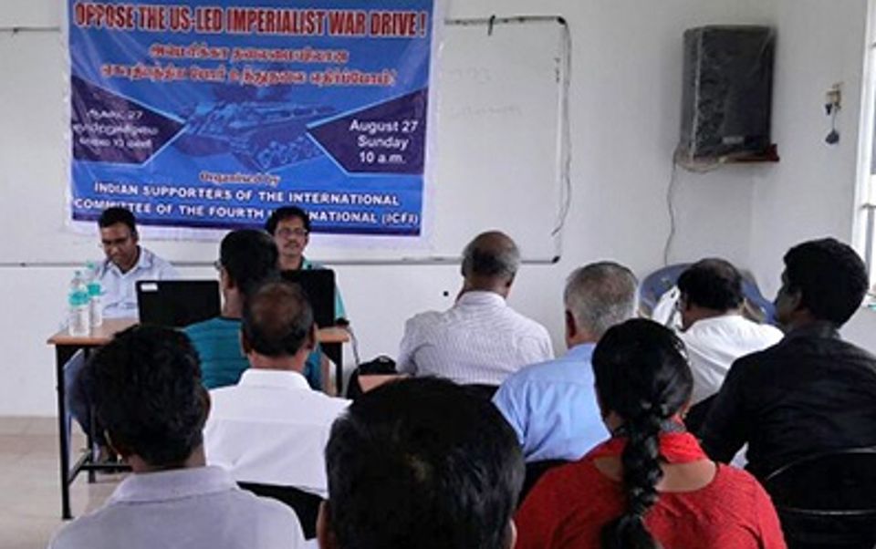 ஆகஸ்ட் 27 அன்று சென்னையில், நான்காம் அகிலத்தின் அனைத்துலகக் குழுவின் (ICFI) இந்திய ஆதரவாளர்கள் அமெரிக்க தலைமையிலான ஏகாதிபத்திய போர் உந்துதலுக்கு எதிராக வெற்றிகரமான பொதுக் கூட்டம் ஒன்றை நடத்தினர். தென்னிந்திய மாநிலமான தமிழ்நாட்டின் தலைநகரில் நடைபெற்ற இந்த கூட்டத்தில் தொழிலாளர்களும், இளைஞர்களும் கலந்துகொண்டதோடு, பேஸ்புக் வழியாக நேரடியாகவும் ஒளிபரப்பப்பட்டது. வெவ்வேறு இந்திய நகரங்களில் இருந்தும், அத்துடன் சர்வதேச அளவில் இருந்தும் இணையவழி பங்கேற்பாளர்கள் வாழ்த்துக்களை அனுப்பியிருந்தனர்.