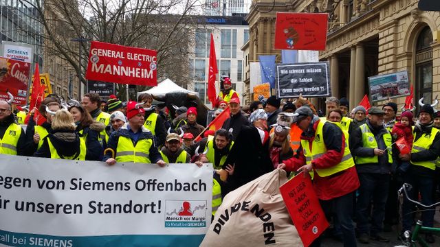 ஃபிராங்பேர்ட் பங்குச் சந்தைக்கு முன்பாக சீமென்ஸ் தொழிலாளர்கள்