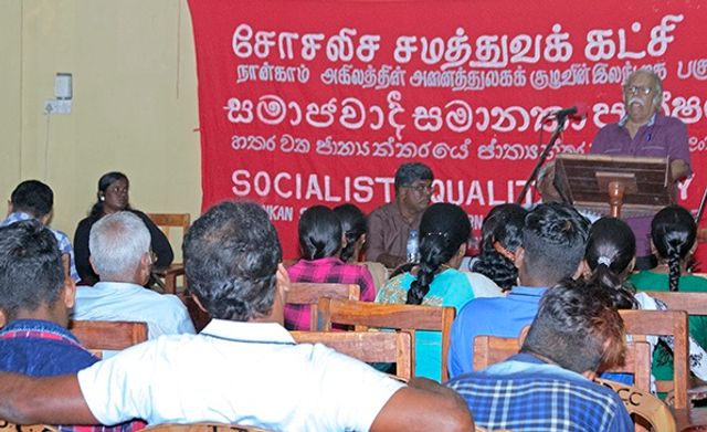 "கடந்த காலத்தில், இலங்கை முதலாளித்துவ ஆளும் உயரடுக்கினால், லங்கா சம சமாஜக் கட்சி, ஸ்ராலினிச கம்யூனிஸ்ட் கட்சி போன்ற துரோக இடதுசாரிகளின் ஆதரவோடு, உழைக்கும் மக்களுக்கு எதிராக அதன் ஒடுக்குமுறை ஆட்சியை தக்க வைத்துக் கொள்ள முடிந்தது. ஏனெனில், அவற்றின் காட்டிக் கொடுப்புக்கள் காரணமாக, இடதுசாரிகள் என்று அழைக்கப்படும் கட்சிகள் மக்கள் மத்தியில் முற்றிலும் மதிப்பிழந்திருப்பதால், இரண்டு பிரதான முதலாளித்துவக் கட்சிகளான ஐக்கிய தேசியக் கட்சி (ஐ.தே.க.), ஸ்ரீலங்கா சுதந்திரக் கட்சி (ஸ்ரீ.ல.சு.க.) ஆகியவை 2015ல் அரசாங்கம் ஒன்றை அமைக்க அவநம்பிக்கையுடன் கூட்டுச் சேர்ந்தன."