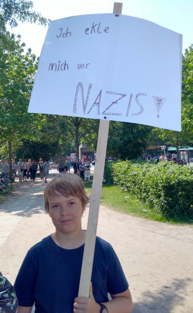 காலையிலிருந்தே பிரன்டென்பேர்க் வாயிலில் இளைஞர்கள் பலர் ஒன்றுகூடினர். மத்திய நாடாளுமன்றத்திற்கு (Bundestag) அருகே "நாஜிக்களால் வெறுப்படைந்துள்ளேன்,” என்று கையில் எழுதிய கோஷ அட்டை வைத்திருந்த ஒரு மாணவர் உலக சோசலிச வலைத் தளத்திடம் கூறுகையில், அதி-வலது மீண்டுமொருமுறை ஜேர்மனியில், எல்லா இடங்களிலும், அணிவகுத்து வருவதென்பது "அதிர்ச்சியூட்டுகிறது" என்றார். “ஏற்கனவே இது நம்மிடையே இருந்தது. அவர்கள் அதன் பெயரால் மில்லியன் கணக்கானவர்களைக் கொன்றார்கள்.”