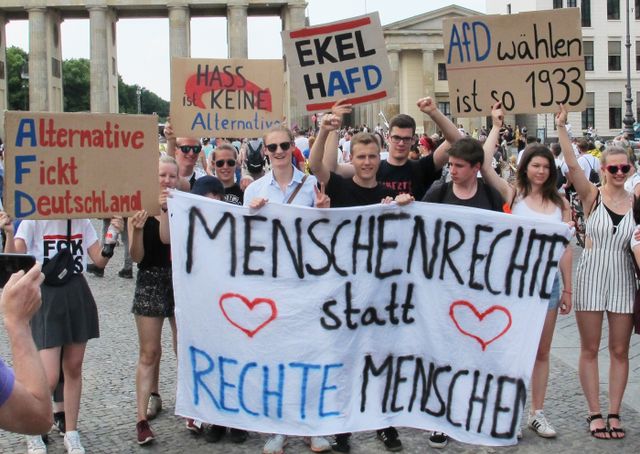 நவ-பாசிசவாத கட்சியான ஜேர்மனிக்கான மாற்றீடு (AfD) கொண்டுள்ள வெளிநாட்டவர் விரோத போக்கு, இனவாதம் மற்றும் இராணுவவாத கொள்கைகளை எதிர்த்து பேர்லினில் பத்தாயிரக் கணக்கானவர்களின் மிகப்பெரும் ஆர்ப்பாட்டங்களை, அக்கட்சியின் ஆதரவாளர்களது ஒரு பேரணி ஞாயிறன்று எதிர்கொண்டது.