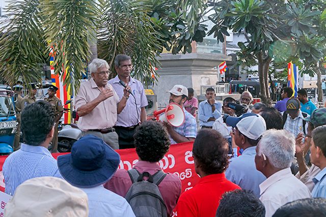 கே. ரட்னாயக்க ஆர்ப்பாட்டத்தில் உரையாற்றுகிறார்