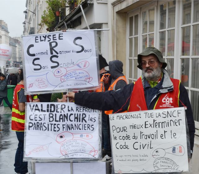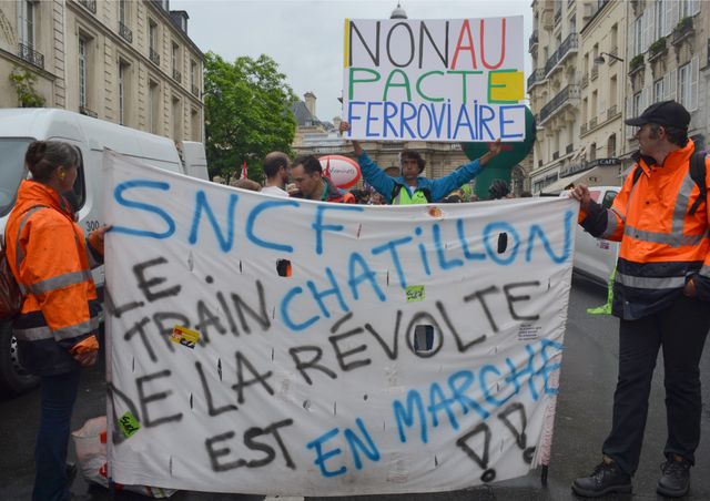 பிரெஞ்சு தேசிய இரயில்வே (SNCF) இன் தனியார்மயமாக்கம் தொடர்பாக பிரதமர் எட்வார்ட் பிலிப்புக்கும் தொழிற்சங்கங்களுக்கும் இடையில் பேச்சுவார்த்தைகள் தொடர்வதற்கு மத்தியிலும் SNCF சீர்திருத்தத்திற்கான அரசாங்கத்தின் மசோதாவை செனட் ஆராயத் தொடங்கிய நிலையிலும், செவ்வாய்கிழமையன்று, இரயில்வே தொழிலாளர்கள் பாரிஸில் வேலைநிறுத்தங்களையும் ஆர்ப்பாட்டங்களையும் முன்னெடுத்தனர்.