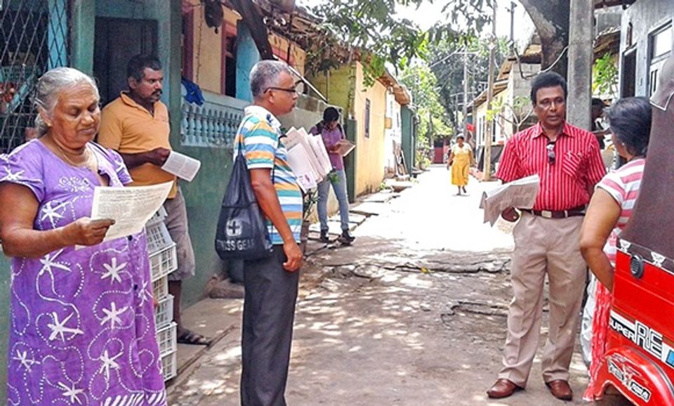 சோ.ச.க. பிரச்சாரத்தில் பங்கேற்றுள்ள சந்திரசிறி (வலது)