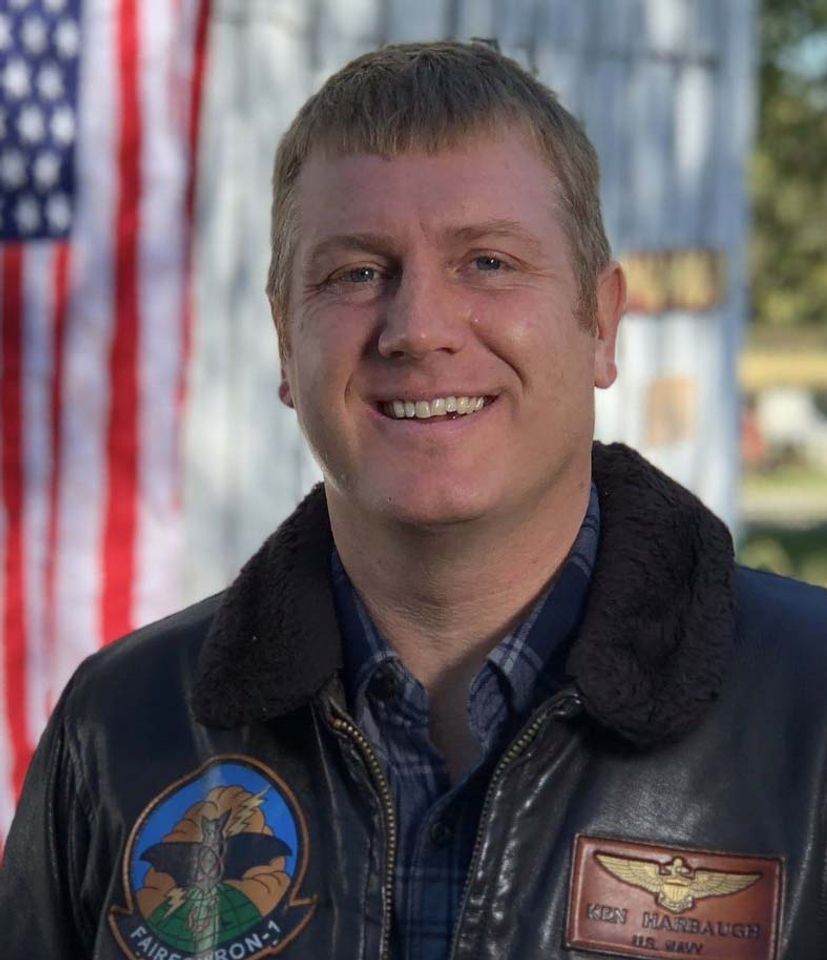 கென் ஹார்பாக், விமானப்படை போர் விமானிகளின் மகனும் பேரனும் ஆவார். அவரும் கூட கடற்படையில் சேர்ந்து ஒரு பைலட் ஆனதுடன், மத்திய கிழக்கு மற்றும் கொரிய தீபகற்பத்தில் பறக்கும் உளவுப் பணிகளில் ஈடுபட்டார். அவரது தேர்தல் பிரச்சார வலைத் தளம், இராணுவ முனைப்பிலிருந்த மற்றும் கடற்படை விமானத்துடன் சேர்ந்திருந்த ஹார்பாக்கின் புகைப்படங்களை சிறப்பம்சப்படுத்துகிறது. இராணுவத்தில் ஒன்பது ஆண்டுகள் பணியாற்றிய பின்னர், யேல் பல்கலைகழகத்திற்கு சட்டம் பயிலச் சென்றார், பின்னர் McKinsey ஆலோசனை நிறுவனத்தில் பணியில் சேர்ந்தார், மேலும் தலைமைச் செயல்பாட்டு அலுவலராகப் பணியாற்றி, பின்னர் அமெரிக்கா மற்றும் உலகெங்கிலுமான இயற்கை பேரழிவுகளுக்காக சேவையாற்ற மூத்த அனுபவமிக்க இராணுவப் படையினரை அணிதிரட்டும் நிறுவனமான டீம் ருபிக்கன் குளோபல் (Team Rubicon Global) நிறுவனத்தின் தலைவராகவும் ஆனார். இவர், கன்டோன்ஸை தளமாகக் கொண்ட மாவட்டத்தை மூன்று முறை தக்க வைத்துக்கொண்ட, குடியரசுக் கட்சியின் நாடாளுமன்ற உறுப்பினரான ராபர்ட் கிப்ஸை கணிசமானளவு முன்னிலையுடன் கடந்து சென்றுள்ளார்.
