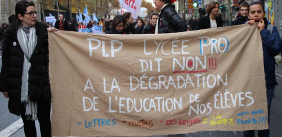 தொழில்முறை உயர்நிலைப் பள்ளி (lycées pros) பாடத்திட்டத்தை வேலைப்பயிற்சி மையங்களுடன் (Centres de formation d’apprentis) இணைக்கும் நோக்குடனான தொழில்முறை பயிற்சி பள்ளிகள் பாடத்திட்டத்திலான சீர்திருத்த திட்டமும் ஆசிரியர்கள் கோபத்திற்குக் காரணமான இன்னொரு விடயமாய் இருக்கிறது. இளைஞர்களின் ஒட்டுமொத்த கலாச்சாரத்தையும் சேதப்படுத்தும் விதமாக பிரெஞ்சு மொழிப்பாடம், வரலாறு மற்றும் கணிதம் போன்ற பொதுவான பாடங்களுக்கு மணித்தியாலங்கள் குறைக்கப்படவிருக்கிறது.