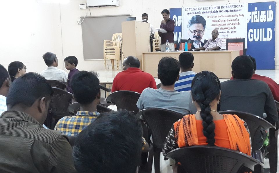 நான்காம் அகிலத்தின் அனைத்துலகக் குழுவின் (ICFI) இந்திய ஆதரவாளர்கள், நான்காம் அகிலத்தின் 80 வது ஆண்டு நிறைவையும் அதன் இலங்கை பகுதியான சோசலிச சமத்துவக் கட்சியின் 50 வது ஆண்டு நிறைவையும் நினைவுகூர்வதற்கு கடந்த ஞாயிறு அன்று சென்னையில் ஒரு பொதுக்கூட்டத்தை நடத்தினர்.