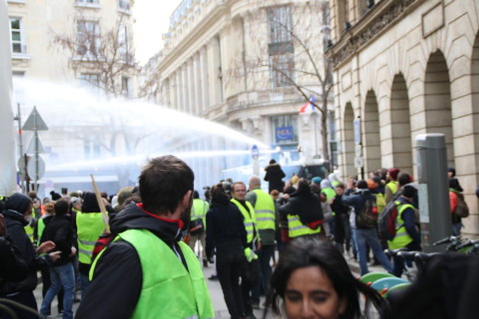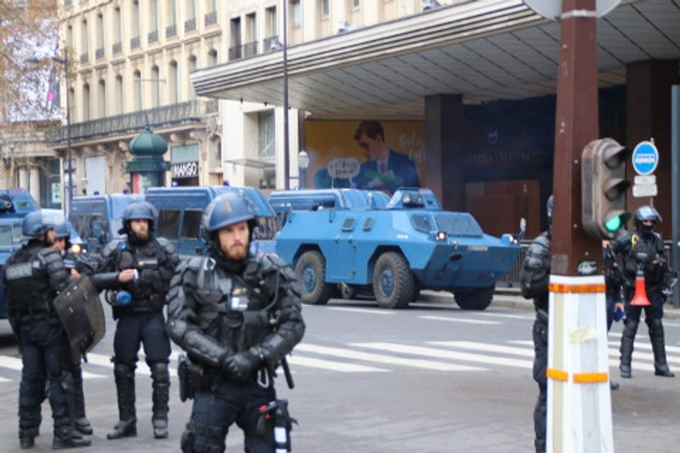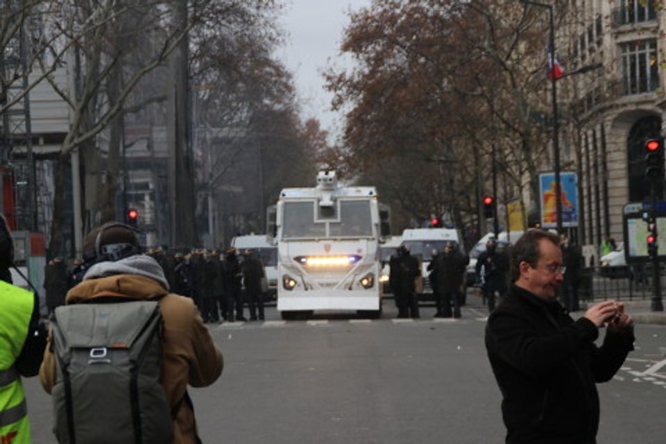 பாரீஸில், பொலிஸ் அசாதாரண ஆக்ரோஷத்துடன் முன்நகர்ந்தது. போராட்டக்காரர்களை அன்றைய நாளின் தொடக்கத்திலேயே கலைத்து விடுவதற்காக, அதிக பலமான பெருந்திரள் கூட்டமாக அவர்கள் ஒன்றுகூடுவதற்காக முன்னரே, பொலிஸ் ஆரம்பத்திலிருந்தே அமைதியான ஆர்ப்பாட்டக்காரர்களுக்கு எதிராக குற்றச்சாட்டுக்களைச் சுமத்தியது. குதிரைப்படை காவலர்கள் உள்ளடங்கலாக இடம் விட்டு இடம் நகரும் ஒருங்கிணைந்த வெவ்வேறு படைகள் மற்றும் கவச வாகனங்களைக் கொண்டு அமைதியான போராட்டக்காரர்களைக் சுற்றி வளைத்து, கலைத்து விடுவதற்காக, சாம்ப்ஸ்-எலிசே மற்றும் அந்நகரின் பல்வேறு இடங்களில் போராட்டக்காரர்களைப் பொலிஸ் தாக்கியது.