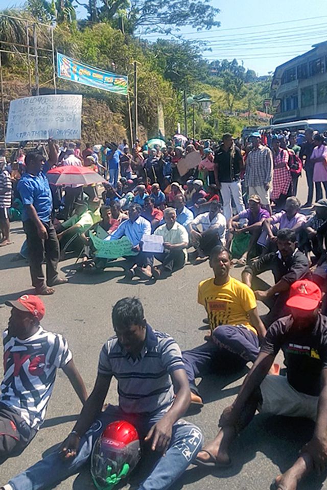 தொழிலாளர்கள் ஹட்டன்-கொழும்பு வீதியை அடைத்து அமர்ந்துள்ளனர்