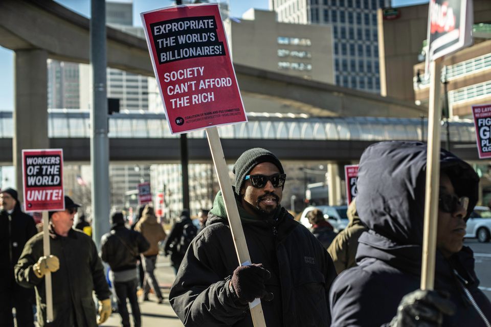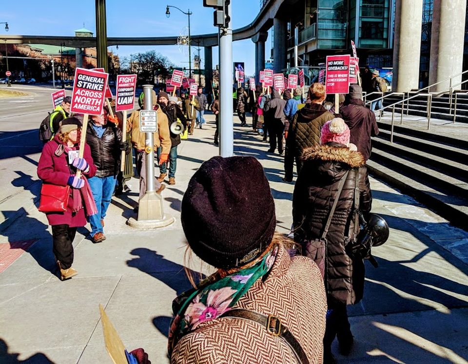 ஜிஎம் ஆலைமூடல்கள் மற்றும் வேலைநீக்கங்களை எதிர்க்க வாகனத்துறை தொழிலாளர்களும், ஆதரவாளர்களும் டெட்ராய்டில் ஆர்ப்பாட்டம்