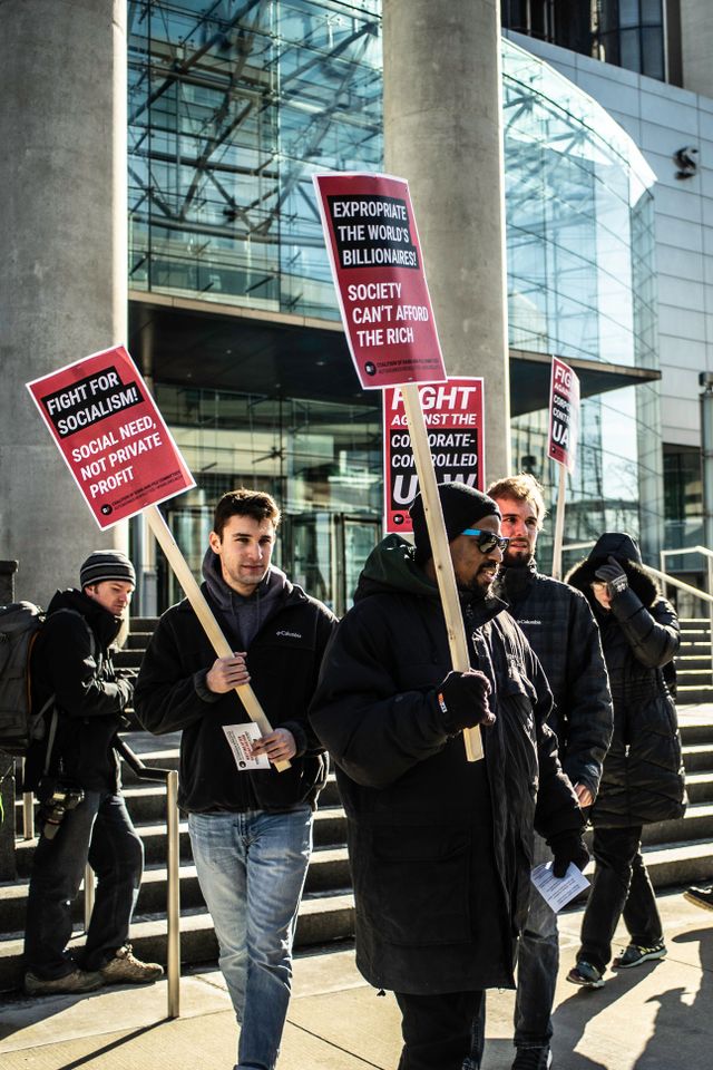 மிச்சிகன், இலினோய், லோவா மற்றும் மேற்புறத்து நியூ யோர்க் எங்கிலும் இருந்து தொழிலாளர்களும் இளைஞர்களும் கீழ்பகுதி டெட்ராய்டில் ஆற்று முகத்துவாரத்தின் மறுமலர்ச்சி மையத்தில் உலகளவிலான ஜிஎம் நிறுவனங்களுக்கான தமையகங்களின் முன்னால் ஒரு மணி நேரம் அணிவகுத்ததனர். டெட்ராய்ட் வாய்ன் மாநிலம் மற்றும் அன் ஆர்பரில் மிச்சிகன் பல்கலைக்கழகத்தில் சமூக சமத்துவத்திற்கான சர்வதேச இளைஞர் மற்றும் மாணவர் அமைப்பினது கிளைகளால் மாணவர் பிரதிநிதிகள் அணிதிரட்டப்பட்டிருந்தனர்.