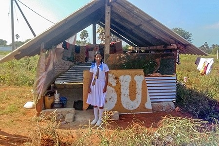 தையிட்டி கிராமத்தில் மீளக் குடியேறியுள்ள ஒரு குடும்பத்தின் வாழுமிடம்