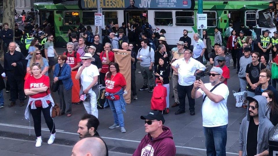 அசான்ஜை பாதுகாக்கும் சோ.ச.க. மெல்போர்ன் பேரணியில் ஒரு பகுதி