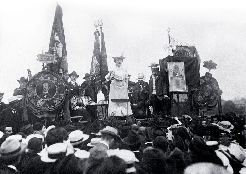இரண்டாம் அகிலத்தின் 1907 ஸ்ருட்கார்ட் மாநாடு கூட்டம் ஒன்றில் ரோசா லுக்செம்பேர்க் உரையாற்றுகிறார்