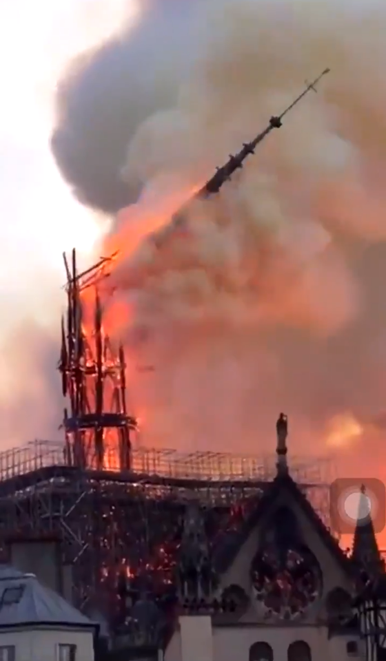 நோத்ர்-டாம் இன் கோபுர உச்சியின் உடைந்து விழும் காட்சி