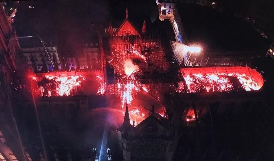விக்டர் ஹூகோவின் 1831 நாவலான Notre Dame de Paris மற்றும் அதை தழுவி எடுக்கப்பட்ட திரைப்படங்களில் என்றென்றும் நினைவில் நிலைத்திருக்கும், ஐரோப்பாவில் பெரிதும் பரவலாக விஜயம் செய்யப்படுகின்ற அந்த நினைவுச்சின்னம், தடுத்திருக்கக்கூடிய ஒரு பேரழிவில் சிதைந்து போயுள்ளது. மேற்கூரையை நாசமாக்கிய நெருப்பு ஜ்வாலைகள் அதன் கோபுர உச்சியைத் தாண்டி உயர்ந்திருந்தன, கீழே விழுந்த கோபுர உச்சி தேவாலயத்தின் கல் மாடங்களை பெயர்த்தது, கீழே இருந்த கலைப்பொருட்கள் மீது உருகிய ஈயம் மற்றும் சாம்பல்களை மழையெனப் பொழிந்தது. பிரதியீடு செய்ய முடியாத 13 ஆம் நூற்றாண்டு கண்ணாடி ஜன்னல்கள் உடைந்து தரையில் நொறுங்கி கிடைந்தன, பிரதான மாடம் சேதமடைந்துள்ளது, தேவாலயத்தின் உள்ளமைப்பு கரும்புகையால் பூசப்பட்டுள்ளது.