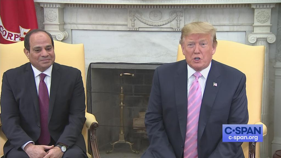 2017 ஏப்ரல் மாதம் சிசி விஜயம் செய்தபோது, 2013 ல் முஸ்லீம் சகோதரத்துவத்தின் எகிப்தின் ஜனநாயக முறையில் தேர்ந்தெடுக்கப்பட்ட ஜனாதிபதி முகம்மது முர்சிக்கு எதிராக இராணுவ ஆட்சி கவிழ்ப்பு மூலம் நிறுவப்பட்ட ஒரு ஆட்சிக்கு ஆதரவு காண்பிப்பதற்கு ட்ரம்ப்பிற்கு ஒரு வாய்ப்புக் கிடைத்தது. அதிகாரத்திற்கு வந்ததில் இருந்து, எல் சிசி ஆட்சி, ஆயிரக்கணக்கான எதிர்ப்பாளர்களைக் கொன்றதுடன் பல்லாயிரக்கணக்கான அரசியல் எதிர்ப்பாளர்களையும், டஜன் கணக்கான பத்திரிகையாளர்களையும் சிறையில் தள்ளியுள்ளது.