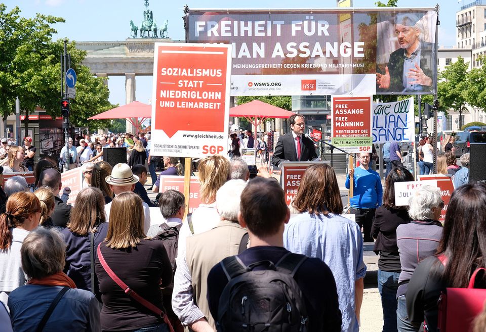 தொழிலாளர்கள், நகரின் பல்கலைக்கழகங்களிலிருந்து மாணவர்கள், மற்றும் ஜேர்மனியிலும் ஆங்கிலத்திலும் எழுதப்பட்ட கையால் தயாரிக்கப்பட்ட பதாகைகளை (கொண்டு வந்த) கையிலேந்தியிருந்த அசான்ஜின் ஆதரவாளர்கள் பலரும் உட்பட பேர்லினில் நடந்த SGP பேரணியில் சுமார் 300 பேர் கலந்து கொண்டனர். இந்த நிகழ்வு ஐரோப்பிய தேர்தல்களில் நான்காம் அகிலத்தின் அனைத்துலகக் குழுவின் தேர்தல் பிரச்சாரத்தின் ஒரு பகுதியாக இருந்ததுடன், அன்று மதியம் தொடர்ந்து நடந்ததான இறுதி தேர்தல் பிரச்சாரக் கூட்டத்திலும் பங்கேற்ற பலரும் கலந்து கொண்டனர்.