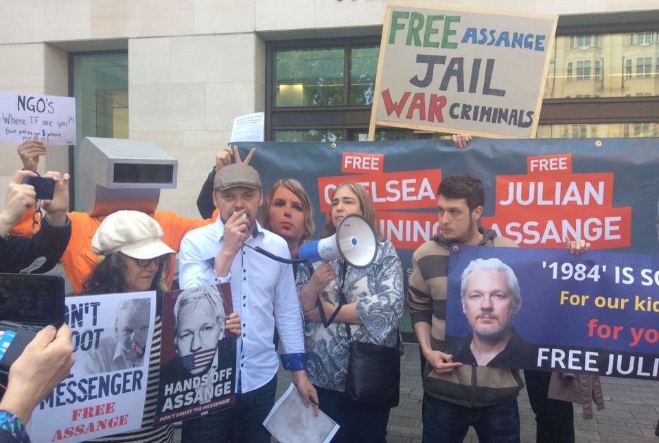 நீதிமன்றத்திற்கு வெளியே பேரணி கூடிய பின்னர், ஆர்ப்பாட்டக்காரர்களின் ஒரு குழு, சர்வதேச மன்னிப்புச் சபை மற்றும் கார்டியன் பத்திரிகையின் அலுவலகங்களை முற்றுகையிட தீர்மானித்தது. மனசாட்சியின்படி செயல்பட்டதற்காக கைது செய்யப்பட்டவர்களாக அசான்ஜ் மற்றும் மானிங்கின் பெயர்களை பட்டியலில் சேர்ப்பதற்கு சர்வதேச மன்னிப்பு சபை மறுத்ததையும், மற்றும் விக்கிலீக்ஸ் ஸ்தாபகர் மற்றும் பத்திரிகையாளரைப் பற்றி, கார்டியன் பத்திரிகை இடைவிடாது அவதூறாக செய்தி பரப்புவது, பொல்லாங்கு கூறுவது மற்றும் நடத்தையை தரம்கெடுப்பது ஆகியவற்றையும் எதிர்த்து அவர்கள் கண்டனம் தெரிவித்தனர்.