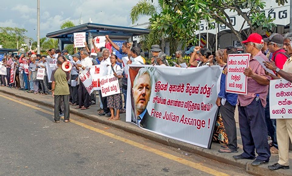 அசான்ஜை பாதுகாக்க 16 ஏப்ரல் 2019 இல் இலங்கையில் நடத்தப்பட்ட பேரணி