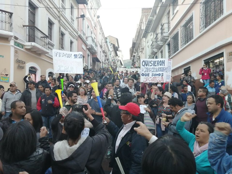ஈக்வடோரில் எதிர்ப்பாளர்கள் [நன்றி: Twitter @KolectiVOZ)