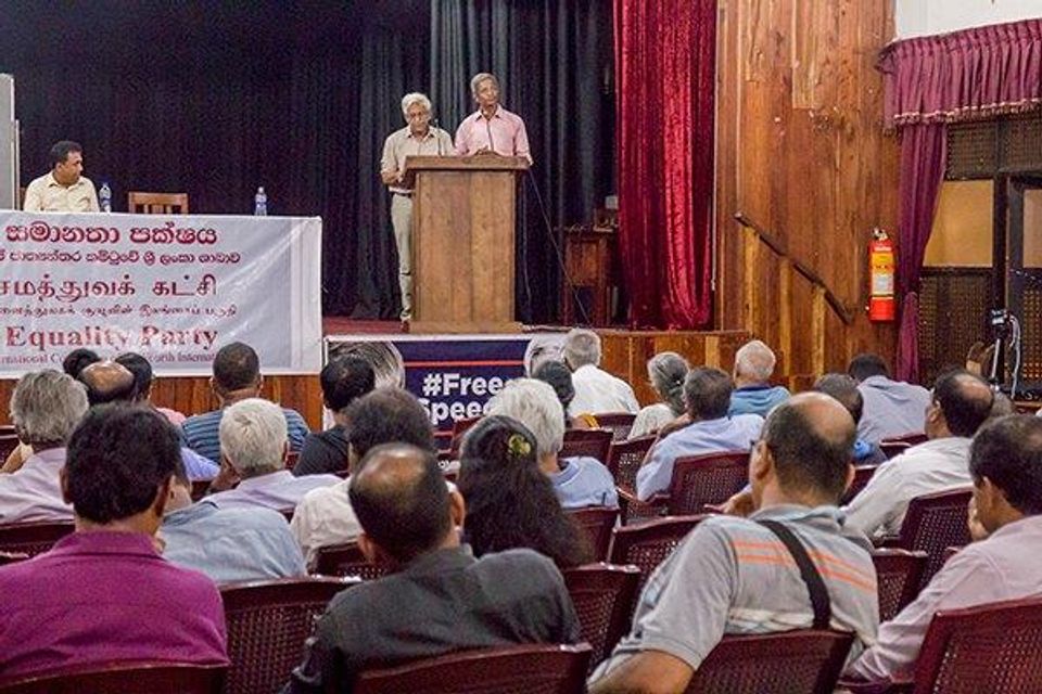 ஜூலை 16 கொழும்பில் நடந்த பொதுக் கூட்டத்தில் டஜன் கணக்கான தொழிலாளர்கள், இளைஞர்கள், கலைஞர்கள் மற்றும் புத்திஜீவிகளும் கலந்து கொண்டனர். இந்தக் கூட்டத்திற்கு சோ.ச.க. அரசியல் குழு உறுப்பினர் பாணி விஜேசிறிவர்தன தலைமை தாங்கினார். உளவு குற்றச்சாட்டுக்கள் தொடர்பாக அசாஞ்சை அமெரிக்காவிடம் ஒப்படைத்து 170 ஆண்டுகள் சிறையில் அடைக்க கூடும், மற்றும் ட்ரம்ப் நிர்வாகம் மானிங்கை மீண்டும் சிறையில் அடைத்து, அவரை நிதி ரீதியாக திவாலாக்க முயற்சிப்பதன் மூலம் அசாஞ்சிற்கு எதிராக அவரை சாட்சியமளிக்க நிர்ப்பந்திக்கின்றது, என விஜேசிறிவர்தன தெளிவுபடுத்தினார்.