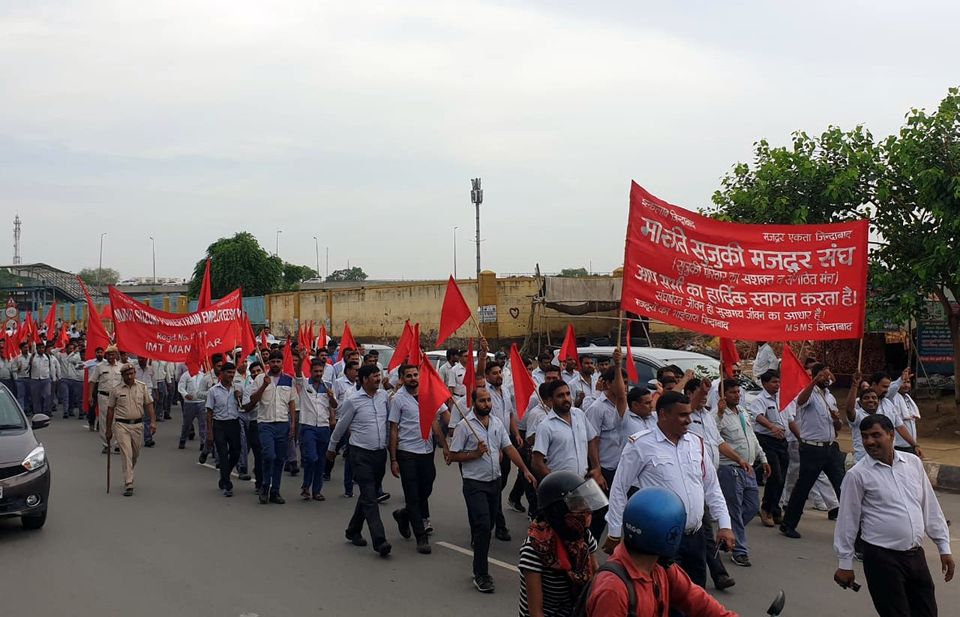 பிரமாண்ட குர்கான்-மானேசர் தொழில்துறை வளாகத்தின் மிகப்பெரிய நகரான குர்கான் வீதிகள் வழியாக அரசு மாவட்ட தலைமையகம் வரையில் தொழிலாளர்கள் அணிவகுத்து சென்றனர்.