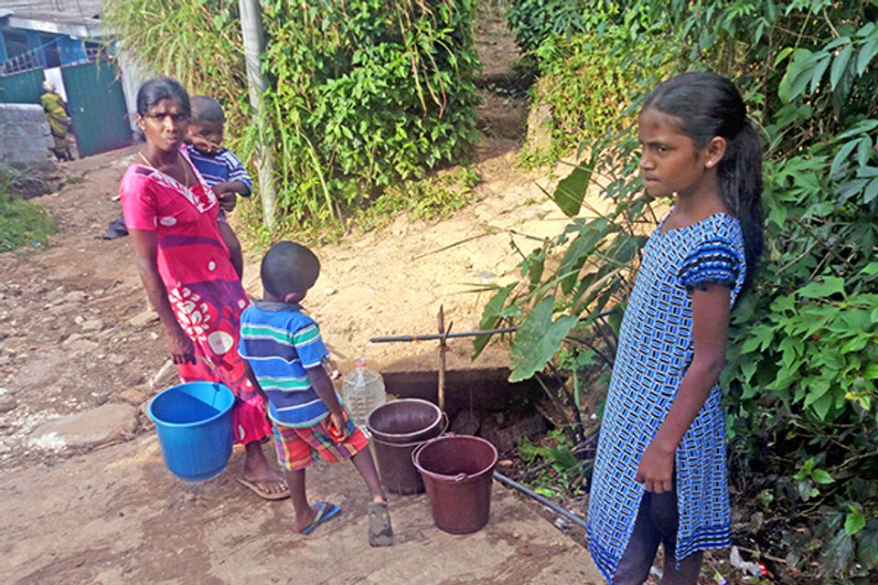 டிக்கோயா தோட்டத்தில் தண்ணீருக்காக காத்திருக்கும் குடும்பம்