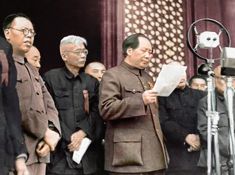 1949 இல் சீன மக்கள் குடியரசை மாவோ பிரகடனப்படுத்துகிறார்