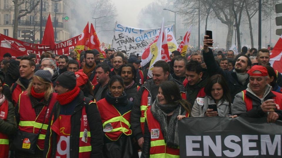 SNCF (தேசிய இரயில்வே) இல் ஜனவரி 2020 இல் பல அடுக்கு பணியாளர் முறையை அறிமுகப்படுத்த அரசு தயாராகின்ற நிலையில், இரயில்வே தொழிலாளர்களின் பல தொழிற்சங்கங்கள் காலவரையற்ற வேலைநிறுத்த நடவடிக்கைக்கு அறிவித்துள்ளன. ஓய்வூதியம், ஊதிய வெட்டுக்கள் மற்றும் SNCF இன் பகுதியளவு தனியார்மயமாக்கம் ஆகியவற்றின் மீதான பரந்த கோபத்திற்கு மத்தியில் நடந்த இரண்டு திடீர் வேலைநிறுத்தங்களால் எந்தவொரு சலுகையும் பெறப்படாமல், தொழிலாளர்களை பணிக்குத் திரும்புமாறு கட்டளையிட்டதற்கு பின்னர் தொழிற்சங்கங்கள் திணறிக் கொண்டிருக்கின்றன.