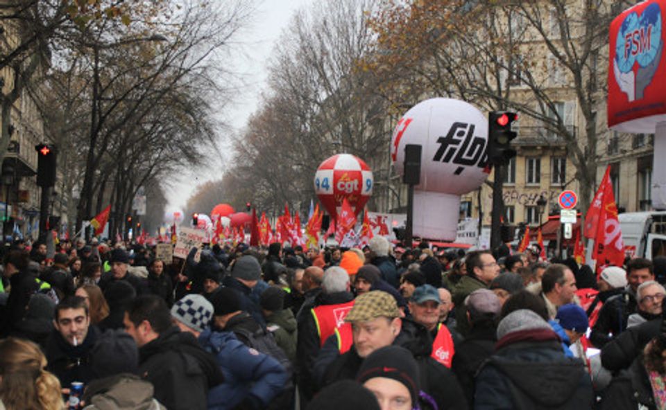 பிரான்சில் வேலைநிறுத்தம் செய்து வரும் தொழிலாளர்கள் ஈராக், லெபனான், சிலி, கொலம்பியா, ஹாங்காங், அல்ஜீரியாவின் பாரிய போராட்ட இயக்கங்களுடனும் மற்றும் அமெரிக்க வாகனத்துறை தொழிலாளர்கள் மற்றும் ஆசிரியர்களின், அத்துடன் பிரிட்டிஷ் இரயில்வே தொழிலாளர்களின் வேலைநிறுத்தங்களுடனும் இணைந்துள்ளனர். நேற்று பிரான்சில், தேசிய இரயில்வே (SNCF) தொழிலாளர்களும், ஆசிரியர்களும் மற்றும் பாரீசின் பொது போக்குவரத்து, மருத்துவமனைகள், விமான நிலையங்கள், எரிசக்தி, துறைமுகங்களின் தொழிலாளர்களும், அத்துடன் மாணவர்களும் வழக்கறிஞர்களும் ஒருங்கிணைந்து அணிவகுத்தனர்.