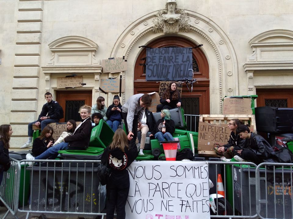 பாரீசில் மாணவர்கள் அவர்களின் பள்ளிக்குத் தடையரண்கள் அமைத்துள்ளனர்