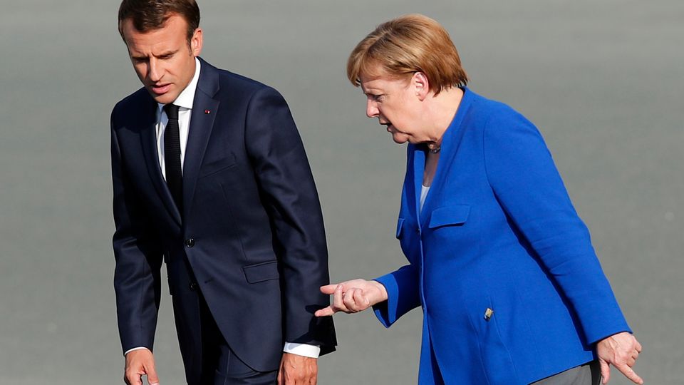 கடந்தாண்டு புரூசெல்ஸில் பிரெஞ்சு ஜனாதிபதி இமானுவல் மக்ரோன் (இடது) மற்றும் ஜேர்மன் சான்சிலர் அங்கேலா மேர்க்கெல் [படம்: அசோசியேடெட் பிரஸ்/ பிராங்கோ மொரி]