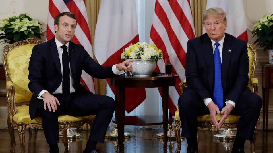 நேட்டோ பொதுச் செயலாளர் ஜென்ஸ் ஸ்டொல்டென்பேர்க்குடன் காலை உணவு விருந்துக்கு முன்னரான ஒரு சிறிய பத்திரிகையாளர் சந்திப்புக்கு வந்த ட்ரம்ப் அதற்கு முன்னர் பிரெஞ்சு ஜனாதிபதி இமானுவல் மக்ரோனைக் கண்டித்தார். ரஷ்யா மற்றும் சீனாவுடன் மத்திய தூர அணுஆயுத தளவாடங்கள் தடை ஒப்பந்தத்தை (INF) ட்ரம்ப் இரத்து செய்ததன் மீதான அமெரிக்க-ஐரோப்பிய மோதல்கள், அல்லது சிரியா மீதான துருக்கியின் சமீபத்திய படையெடுப்பு போன்ற பிரச்சினைகளின் காரணமாக—நேட்டோ கூட்டணி "மூளைச் சாவு" அடைந்து விட்டதாக எக்னொமிஸ்ட் பத்திரிகைக்கு மக்ரோன் வழங்கிய கருத்து, “மிகவும் மோசமானது,” என்று ட்ரம்ப் அறிவித்தார்.