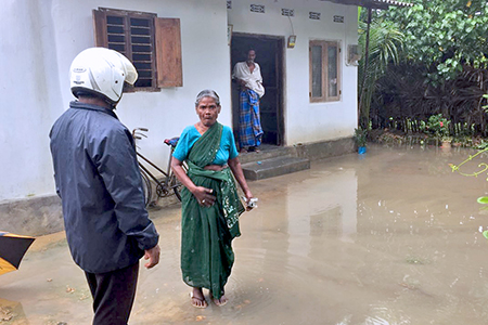 மு. தெய்வானையின் வீட்டில் அவரும் அவரது கணவரும் மட்டுமே உள்ளதுடன் அவர்களது வீட்டைச் சுற்றி வெள்ளம் நிற்கின்றது. “குளிர் மற்றும் காய்ச்சலால் பாதிக்கப்பட்டுள்ளோம். நோயாளியான எனது கணவரால் வருமானம் ஈட்ட முடியாது. நான் ஒரு வீட்டில் சமையல் வேலைசெய்து 250 ரூபா பெறுவேன். அதைக் கொண்டுவந்து தான் சமைத்துச் சாப்பிட வேண்டும். நாங்கள் யுத்த்திலும் பாதிக்கப்பட்டோம். வெள்ளத்தினாலும் பாதிக்கப்படுகிறோம்.” என அவர் தெரிவித்தார்.