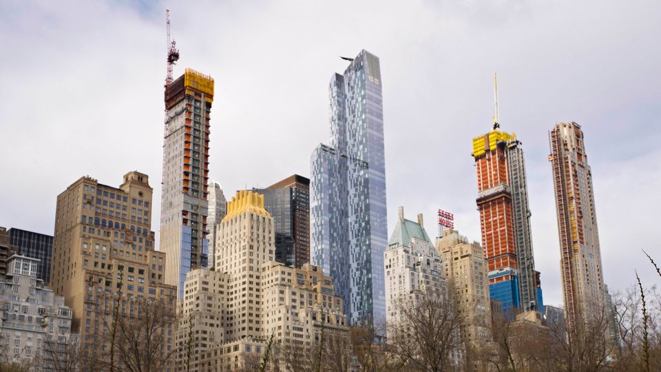 நியூ யோர்க்கின் சென்ட்ரல் பூங்காவையே மறைத்து விடும் அளவுக்கு புதிய அடுக்குமாடி குடியிருப்புகள் கட்டப்பட்டு வருகின்றன, செவ்வாய்கிழமை, ஏப்ரல் 17, 2018. (அசோசியேடெட் பிரஸ் - மார்க் லென்னிஹன்)