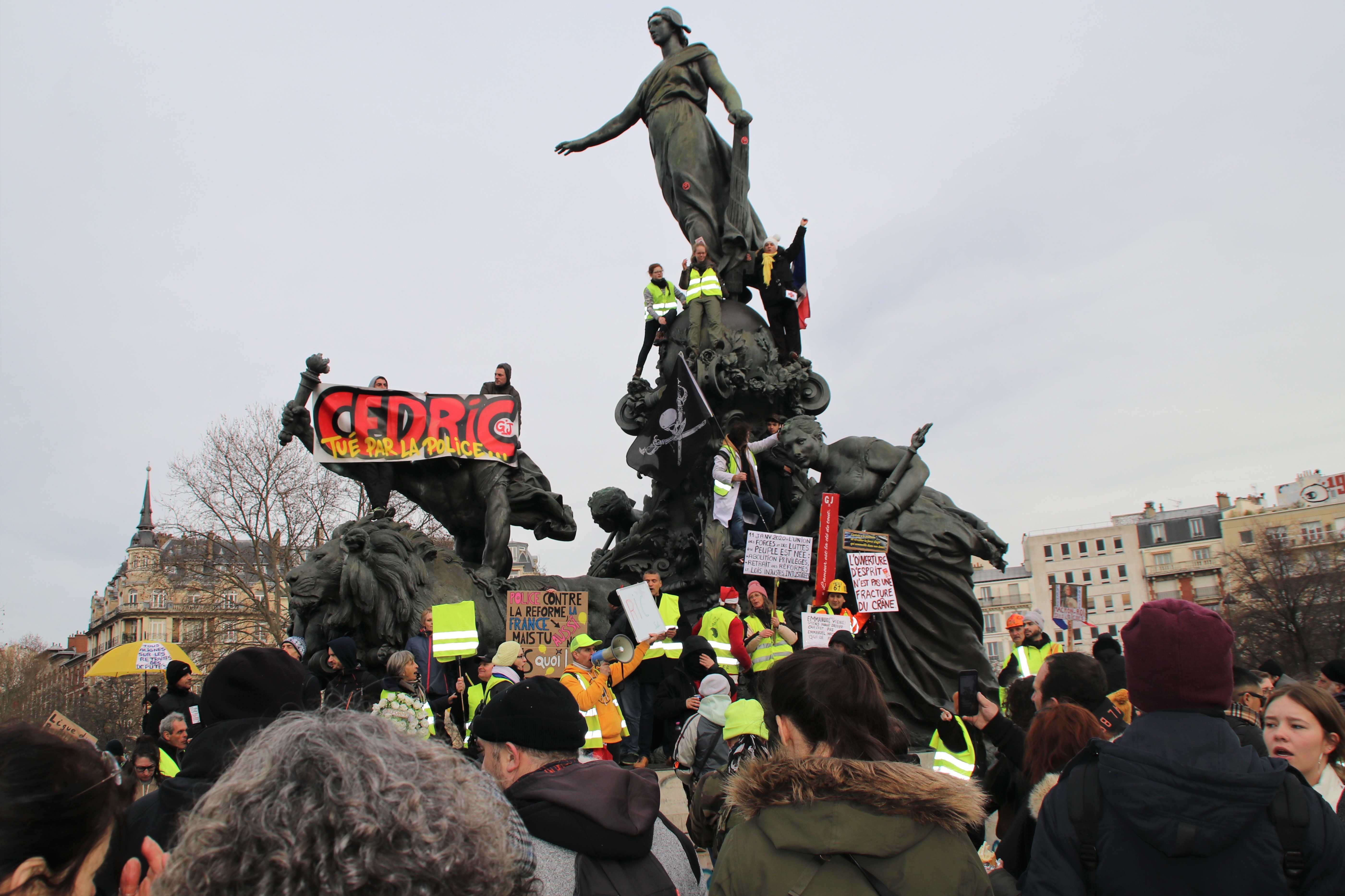 ஈரானிய நெருக்கடிக்கு மத்தியில் மற்றும் மக்ரோன் அவர் வெட்டுக்களைத் திணிக்க நகர்ந்து வருகையில் அதிகரித்து வரும் போர் மற்றும் ஒடுக்குமுறையைப் பல போராட்டக்காரர்களும் சுட்டிக்காட்டினர். ஒரு பிரெஞ்சு ஆசிரியையான சோபி கூறினார், பொலிஸ் வன்முறை "சகித்துக் கொள்ளவியலாதளவுக்கு, இன்னும் மோசமாக, ஒரு நிரந்தர நிகழ்வாக ஆகி வருகிறது. ஊடகங்களை குறித்து என்னுடன் பேசவராதீர்கள். புத்திஜீவிகள் அதற்கு எதிராக பேச வேண்டும். அவர்கள் அனைவருமே இந்த பிரச்சினை மீது குறிப்பிடத்தக்க அளவில் மவுனமாக உள்ளனர். பொலிஸ் வன்முறை கண்டித்தக்கதாக உள்ளது, மேலும் அவர்களால் விதிவிலக்கீட்டுரிமையுடன் நடந்து கொள்ள முடிகிறது என்பது இன்னும் மோசமானது. கடந்த வியாழக்கிழமை போராட்டங்களின் போது என்ன நடந்ததோ அது பயங்கரமானது, அவர்கள் ஏறக்குறைய நேருக்கு நேராக ரப்பர் தோட்டாகளைப் பயன்படுத்தி சுட்டார்கள்.”