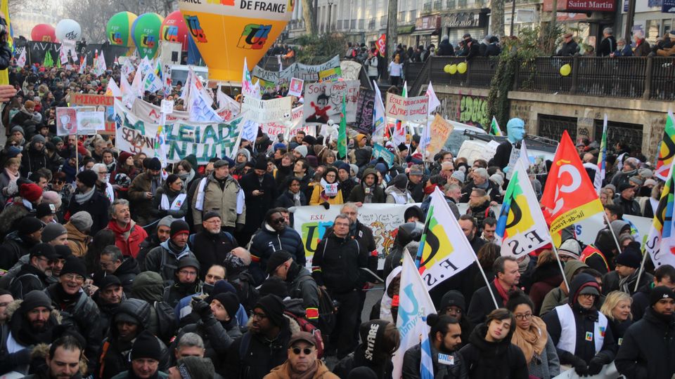அடுத்த மாதம் தேசிய நாடாளுமன்றத்தில் ஓய்வூதிய சட்டமசாதாவை நிறைவேற்றுவதற்குத் தயாரிப்பு செய்யும் வகையில் ஜனாதிபதி இமானுவல் மக்ரோன் அதை அவரின் மந்திரி சபையில் முன்வைத்த பின்னர், அவரின் ஓய்வூதிய வெட்டுக்களுக்கு எதிராக நூறாயிரக் கணக்கான வேலைநிறுத்தக்காரர்களும், “மஞ்சள் சீருடை" போராட்டக்காரர்களும் இளைஞர்களும் வெள்ளிக்கிழமை பிரான்ஸ் எங்கிலும் போராட்டங்களில் அணிவகுத்தனர். வரவிருக்கும் ஆண்டுகளில் மற்றும் தசாப்தங்களில் ஓய்வூதியங்களை வெட்டுவதற்கு பிரெஞ்சு அரசை அனுமதிக்கும் அந்த சட்டமசோதாவுக்கு எதிராக இரயில்வே மற்றும் போக்குவரத்துத் துறை தொழிலாளர்கள் ஆறு வாரகால வேலைநிறுத்தத்தை முடித்துக் கொண்ட பின்னர் இந்த போராட்டங்கள் வந்துள்ளன.
