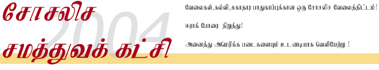 சோசலிச சமத்துவக் கட்சியின் 2004 தேர்தல் அறிக்கையை கீழே வெளியிடுகின்றோம். இது முதலில் பெப்ரவரி 4, 2004 அன்று தமிழில் வெளியிடப்பட்டது. ஜோன் கெர்ரி ஜனநாயகக் கட்சியின் ஊகிக்கக் கூடிய ஜனாதிபதி வேட்பாளராக தேர்வு செய்யப்பட்டதை கணக்கில் கொண்டு இது மறு ஆய்வு செய்து திருத்தம் செய்யப்பட்டிருக்கிறது. சோசலிச சமத்துவக் கட்சியானது எமது ஆதரவாளர்களையும் உலக சோசலிச வலைத் தளத்தின் வாசகர்களையும் 2004 தேர்தல்களில் சுதந்திரமான சோசலிச பிரச்சாரத்தில் சேருமாறு அழைப்பு விடுக்கின்றது. ஜோன் கெர்ரிதான் ஜனநாயகக் கட்சியின் ஜனாதிபதி வேட்பாளர் என்று அநேகமாக உறுதியாகிவிட்ட நிலை, நிலவும் இரு கட்சி முறை எவ்வாறு அமெரிக்காவின் பெருநிறுவன-நிதி ஆதிக்க ஒருசிலவரது ஆட்சிக்கு முற்றிலும் அடிபணிந்து நிற்கிறது என்பதை மீண்டும் விளக்கிக் காட்டியுள்ளது. பெருவணிகத்தின் அனுபவம் நிறைந்த நம்பிக்கைக்கு உகந்த பிரதிநிதியாக விளங்கும், மாசாச்சுசெட்ஸ் செனட் உறுப்பினர் தொழிலாள வர்க்கத்திற்கு எதையும் கொடுக்கக் கூடியவர் அல்ல. அவர் வாதிடும் கொள்கைகளில், ஜோர்ஜ் டபுள்யூ புஷ்ஷிற்கு, கெர்ரி மாற்று ஏதும் கொடுக்கவில்லை. இவர் அளிக்கும் "மாற்றம்" அதிகபட்சத்தில், செயல்முறை பாணியே அன்றி பொருளடக்கத்தில் இல்லை. புதிய அமெரிக்கப் பேரரசை நிறுவுவதற்கு ஆளும் செல்வந்த தட்டினாலான உந்துதலுக்கு முதற்படியில் இருக்கும் ஈராக்கின் அனைத்து முக்கியமான பிரச்சினையிலும், முற்றுகைக்குட்பட்ட அந்த நாட்டை தொடர்ந்து ஆக்கிரமிக்க வேண்டும் என்றும் அந்நாட்டு மக்களை இராணுவ முறையில் கடுமையாக அடக்கவேண்டும் என்பதற்குச் சிறிதும் தளர்வுறா ஆதரவைத்தான் கெர்ரி அறிவித்துள்ளார். போரை எதிர்த்த மில்லியனின் கணக்கிலான அமெரிக்கர்கள் இரு கட்சி அரசியல் முறையினால், ஆளும் செல்வந்தத் தட்டின் அரசியல், நிதி நலன்களுக்கு எந்தவித தீவிர சவாலும் விட இடமில்லாத வகையில், வாக்குரிமை பறிக்கப்பட்டவர்களாகி இருந்து வருகின்றனர். ஜனாதிபதி பதவிக்காக பில் வான் ஒகெனும், துணை ஜனாதிபதி பதவிக்காக ஜிம் லோரன்சும் சோசலிச சமத்துவக் கட்சியின் வேட்பாளர்களாக நிற்பவர்கள்தான் 2004 தேர்தலில் அமெரிக்க ஏகாதிபத்தியத்தின் வேலைத் திட்டத்திற்கு ஒரு புரட்சிகர மாற்றை முன்வைக்கும் வேட்பாளர்கள் ஆவர். அவர்களும், தேசிய சட்ட மன்றத்திற்கு நிற்கும் சோசலிச சமத்துவக் கட்சியின் வேட்பாளர்களும் உழைக்கும் மக்களின் நலன்களை காக்கவும் போர், சமூக பிற்போக்கு, ஜனநாயக உரிமைகளின் மீதான தாக்குதல் ஆகியவற்றை எதிர்க்கவும் ஜனநாயக மற்றும் சோசலிச வேலைத்திட்டத்தின் பேரில் போட்டியிடுகின்றனர். 54 வயது நிரம்பிய பில் வான் ஒகென், உலக சோசலிச வலைத் 
